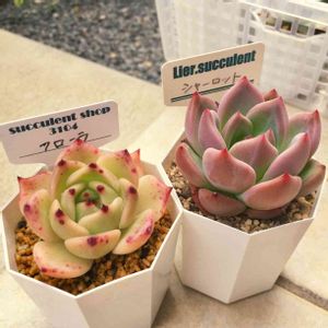 歯医者から帰って来たら、TANIKU屋NON NONさんから苗が届いていました❤️ ネット版Lierフェスで購入したコ達で、首を長くして待っていました゚+.゚(´▽`人)゚+.゚✨ 箱がすごく大きかったので、オマケ苗たっぷり⁉️と思ったのですが、違いましたー\( ˙▿︎˙ )/(笑) それでは個別にご紹介していきたいと思います💡 ロンリーハート…多分一番人気だったと思われるコ。 無事買えて良かった❤️ 私の記憶が確かならラグナ×チワワだったはず…💦(追記:チワワ×アッセンシオンでした💦) 小さいけど、将来性を感じさせる美人さんです(*ฅ́˘ฅ̀*)💕 ルースカー…ころろんフォルムとブツブツ紅葉が可愛いな、と思って購入を決めたコ。 実物めっちゃ可愛い〜😍❤️ 開いたら台無しだと思うので、お水は切り気味で行こうと思います🎶 リップスティック…ひとつだけ規格外の大きさ❗️ でっっっか、そして重ッッッ∑(;゚ω゚ノ)ノ‼️(笑) リップスティック=魅惑の宵です💡 リップスティックは他のエケベリアに付けられている名前なので無効な筈ですが、なぜか今になって韓国でその名前がリバイバル。 まあ、見れば魅惑の宵って分かるよね…( ̄∀ ̄;) ちなみにこの三個、同じ金額です(笑) リップスティックのお得感がスゴい…❗️ マッコス錦…2000円以上購入するともらえるオマケ苗、なんと錦シリーズでした❗️ ラッキーv('ω'*v)❣️❣️❣️ 今はミドリンですが、紅葉したらバリ可愛んじゃね⁉️ だってノーマルのマッコスだってあんなに可愛いジャン٩(ˊᗜˋ*)و🎶 大切に育てようと思います( ⸝⸝⸝⁼̴́▽⁼̴̀⸝⸝⸝)✨ Lier苗は夏弱いので気を付けなければ…❗️