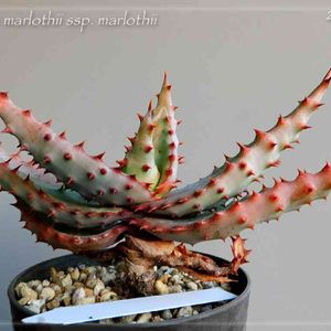 アロエ、マルロシー(鬼切丸)。寒さで引き締まり、棘がいっそう赤くなって、ワイルド&デンジャラスに。