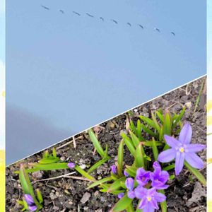 チオノドクサが咲き始めました😊💙 スマホでは紫になってしまうけど、実際はもっと青紫✨ しかも強風でピントも合わない🌀 大好きな色なんです😌💙💜 白鳥の群れが鳴きながら翔んでました🦢 春の旅立ちの練習かな👋👋 高いなぁ~ 頑張ってね~🕊️