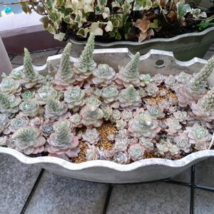寄せ植えWS🌵 タニ友AOBAさんのお宅で 涼しげな寄せ植えしました🙋 白雪ミセバヤ初めてでした お庭もとても素敵🤩 ご主人が作ってくれた棚が あちらこちらに すご~い❣️と言いっぱなしでした うちの庭ももう少し陽当たりが よければな~😅