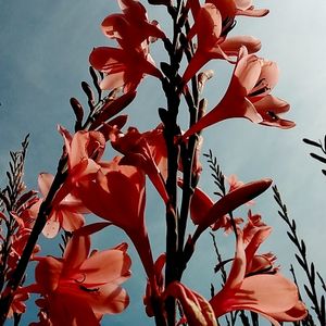 庭の地植えのワトソニア 🐒 ミナミアフリカ ゴイッコウ (アヤメ科ヒオウギズイセン) 😳 🐧 ? 🚜 🐘🐘🐘 🐫 たくさんの花茎が背丈ほどになり ピンクの花が開花し始めています 同じ南アフリカ原産の グラジオラス(アヤメ科)と近縁種で少し似ています