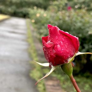 旅先でのひとコマ🧳 あいにくの雨で、咲いてる薔薇たちはみんなショボン😞 蕾たちはキラキラしてたよ*:・゚✧ 🏷️金曜日の蕾たち 5枚目は石楠花だよね( Ꙭ)