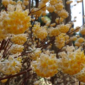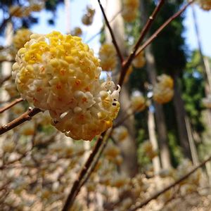 ミツマタ(三椏) ジンチョウゲ科の落葉低木で和紙の原料になります😃 ヒマラヤ原産で早春に黄色くて丸い花を葉が出る前に咲かせます😊 枝が三叉に分かれることから名がつきました😉中には四つ又もあります🙃 群生地では甘い香りが漂っています😃