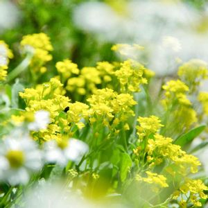 黄花アリッサム💛サミット カモミールと一緒に春風にゆらゆら…咲き始めました✨