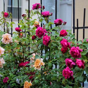 フェンスのバラ オデュッセイアとつるジュリアです。 今日は大雨なので以前の写真です。 5月12日の姿。