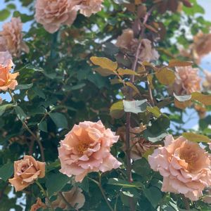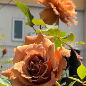 見切り品で買った、つるジュリアが綺麗に咲いてくれました🙌 茶バラは初めてだけど、落ち着いた色で素敵だな✨ 写真だとうまく色をお伝え出来ないのが残念😣