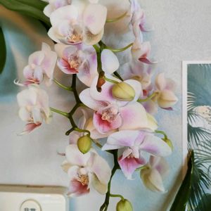 夜分遅くに失礼致します🌙… 以前投稿した水耕栽培の胡蝶蘭が咲きました🥹 タグを紛失してしまい、何色が咲くのかもわからなかったけど「白色」でした。 白いお花って華やかさはないけど清楚でナチュラルだから好き💕