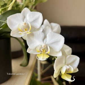 十和田湖畔近くで咲いてた白い花 白い水曜日が定番化しそう🤍 胡蝶蘭を引取りました。葉が沢山ついてて立派な大株です。花茎径も7ミリ位あって根元からカット✂️ ミニ胡蝶蘭も3本目の花茎が上がり益々元気💛