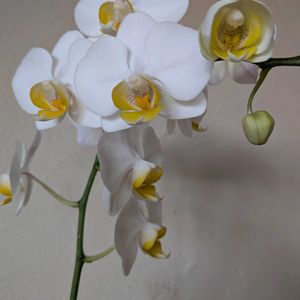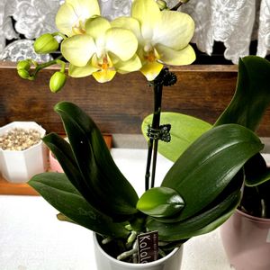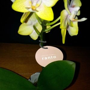 「胡蝶蘭」です。正しくは、「ミニ胡蝶蘭」です。黄色い花に惹かれました😍 花言葉は、「幸福が飛んでくる」「純粋な愛」 黄色は「進出」「活発」「商売繁盛」