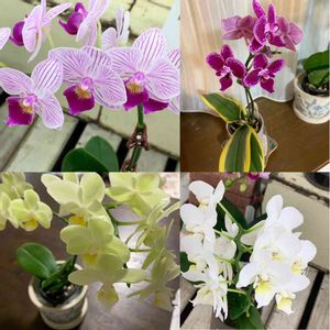 こんばんは⭐️ 小さな胡蝶蘭。 おうちファレノ"kalala"です。 9日の木曜日、植木鉢を買おうとホームセンターに行ったら沢山のミニ胡蝶蘭を発見👀✨ そのまま通り過ぎる事が出来ませんでした。 どの子も可愛くて「どの子がいいかなぁ🎶」なんて選んでいる時間はとても楽しくて幸せな時間です🥰 実家の父がおうちファレノだろう、ミニ胡蝶蘭を上手に咲かせていて私もチャレンジしてみたくなりました。 2本立ちでとても元気が良さそうな この子をお迎えしました。ブルーベリーパイって品種のようです。 ルンルン気分になり肝心の植木鉢を買い忘れてしまいました💦あーおっちょこちょい😩💦 今朝のpicより…
