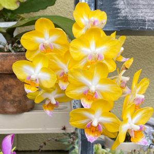 須和田農園でお買い物😄 今日GSの花友さんと須和田農園さんに行きました。 胡蝶蘭カララはお土産に頂いた花です😍 大事に育てますね😄 須和田農園さんでは、今日は蘭を買わないつもりで、不足していた2号と2.5号の素焼き鉢を5個ずつ購入して帰りました😙 花友さんと市川の鑑賞植物園(温室)に行き(地元ですが、初めて行った😅)別れた後、畑に寄ったのですが、雨が降って来たので、また須和田農園さんに伺いました🤣🤣🤣 朝伺った時に気になっていたベラマリーのオレンジペタル(ラベルは実生)と、ウスネオイデスまで購入しました😆 植欲が止まりませんね😊
