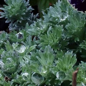 アサギリソウの新芽に久々に降った雨が付いてキラキラ。