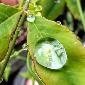 南天の葉っぱ 雨粒✨ (*˘︶˘*).。*♡🩵💧