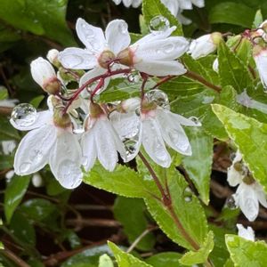 今日は,朝から冷たい雨が、🌧️ ヒメウツギ冷たい雨に打たれて寒そうにしなだれています 手根管症候群の手術で 2泊3日の入院生活を済ませて帰りました。門近くの鉢植えのヒメウツギが一昨日は、まだ咲きはじめ たばかりでしたが6〜7割程開花していました。 前々日、前日は、快晴で咲き進んだようですね💕 花言葉:秘密 秘めた濃い青色の 夏の訪れ 🏷️白い水曜日 🏷️雨粒