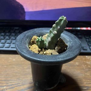👉ウチワサボテン2種👈 ①ウチワサボテンにのっけた桃太郎(下) ちょぼりんこ㈲ ②ウチワサボテンにのっけた桃太郎(上) ちょぼりんこ㈲ 元は一本ですが、上と下を余すことなく載っけています😎✌️ ③以前コロチンチョしたスルフレア🌵PCの横に置いておりました。そして今日よくよく見てみると… ④はいー発根確認でーす🤩✨ とりあえず一安心😁✌️🎶