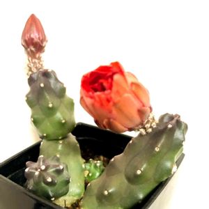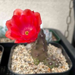 エキノケレウスの桃太郎🍑開花❣️ 「駅の毛れうす」と検索予測が出て爆笑してしまった今朝🤣 ビョーンと伸びていたのが、昨年折れてしまい、ダメ元で✂️挿したら復活してくれました😍 お子ちゃまが斑入りっぽくて可愛い(⌯˃̶᷄ ⁻̫ ˂̶᷄⌯) 単なる☀️不足だけど😅 外管理にしようとしたら、蕾があったので居残り組🏠