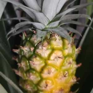 パイナップルがやっと熟してきました!苦節4年ですー。ヤッター。もう食べられるかな?