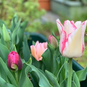 2色咲きチューリップピンクの方が色濃くなってきました💗
