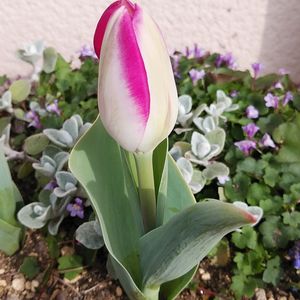 チューリップ🌷の葉っぱが。。。 気付かなかったけどらチューリップが咲い葉っぱが、綺麗な斑入りでした〜🤩✨ この子、まだお花咲かせない蕾ちゃん✨🤣