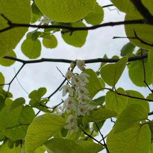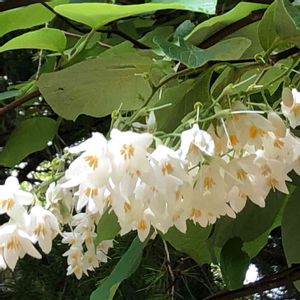 新緑の木々を見上げていたら、 白い花が咲いている。💖😱 名前もわからず、写真をスマホで撮っていたら、自転車🚲のご婦人が、教えてくださいました。 「綺麗でしょう!これは、ハクウンボク(白雲木)ですよ。」 ご親切にありがとうございます。🙇 エゴノキに似ていますね。🌿 初めて見る花でした。🌸