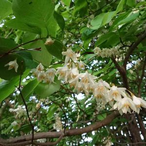 "ハクウンボク" 🤍 遊歩道で🚶🚴 大きな葉っぱの下に💚 白い小花が~ 垂れ下がるように咲く 可憐な花に 🤍 魅了されました🤗