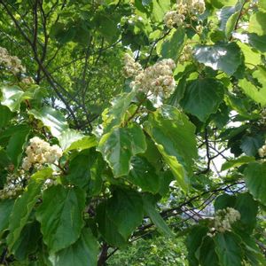 白雲木(ハクウンボク) エゴノキ科エゴノキ属の落葉小高木。冷涼な山地に生え、公園にも植えられる。円に近い形の大きな葉がよく目立ち、芽が葉柄の内部で作られる。花期は5~6月。枝先からやや下垂する総状花序に白い花を20個ほどつけ、花は下向きに咲く。花は咲いてから一週間もしないうちに散る。果実は蒴果。ブドウのように房状に連なる。卵円形で表面に星状毛が密生する。秋に熟すと果皮が縦に裂け、中の種子とともに脱落する。蒴果の中に種子は1個。種子から油をとりロウソクを作る。 同属のエゴノキと同じように、オトシブミの仲間が葉を巻いて揺籃(ようらん)を作る。揺籃の中で卵から孵化した幼虫は周囲の葉に守られ、それを食べながら成長する。 名前は、房になって咲く花を白い雲に見立てた。また、よく似た同属のエゴノキは別名チシャノキといい、本種はエゴノキより葉が大きいためオオバヂシャという別名がついた。 出典『葉っぱで見わけ五感で楽しむ樹木図鑑』『里山の花木 ハンドブック』『樹木 見分けのポイント図鑑』『草木の種子と果実』『樹木の名前』