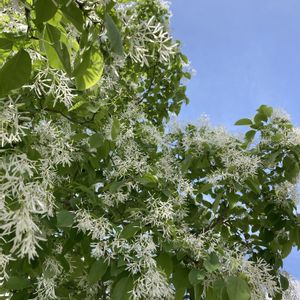 服部牧場のガーデンに行くつもりでしたが、メンテナンス中でしたので愛川公園へ やっぱり青空が似合います ❶ナンジャモンジャも満開になっていました。 ❷遠くから見たらハンカチの🌳木に見えたので、近寄ってみたらハクウンボクでした❗️