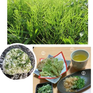 雑草の代表みたいな スギナ ですが、 実は食べられると教えて貰い、早速トライ。 すごくミネラル(ほうれん草の155倍! )ビタミン豊富で、美容やら自立神経安定・ガン予防等等等によいそう。 ①💮🍵すっきり、なんなら甘みがある😊 →フライパンで炒り、煎じて飲む ②◎天ぷら。美味しい!少し青臭いのがいい ③✖️▲ お浸し。若葉を選んだけど 口に残る。草を食べている気になる。 ④ ▲ すりゴママヨ和え。味を付けたら食べやすくなったけど、でもやはり…(・ᴗ・`; ) ⑤ ○ スギナおにぎり🍙 塩ゆで→塩もみでかなり柔らかくしたから 若葉ですれば、多分美味しい。 どれも全く苦味はないけど、食感が🫢 もっと湯がけばいいのかも。 お粗末食レポでした🙈 *つくしとスギナは同じもので つくしの方を胞子茎 スギナの方を栄養茎というらしい。