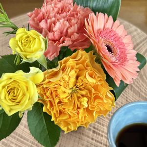 昨夜、長女から4日遅れの母の日のプレゼントに、マグカップと このプチブーケを貰いました。遅かったので、「母の日、プレゼント無いけど、まぁ元気にしてくれてるのが一番の親孝行だなぁ〜」と思っていました。が・・プレゼントってやっぱり、嬉しいもんですね〜😊