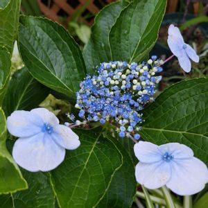 常山アジサイ 碧の瞳 喉が痛い 風邪ひいたって感じじゃない 口内炎と舌炎もあるので、咽頭炎かな 毎年 1回、喉に水疱ができているということを思い出した( ´△`)アァ-