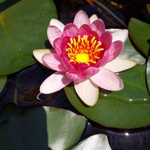 温帯睡蓮ズ(黒姫, タン・クワン, ペリーズ・タブル・イエロー)はもう咲きそうもないが、熱帯睡蓮ズはまだまだ咲く気満々 秋空の下、チリチリせずに良い感じ 撮影日:10/7