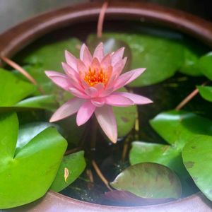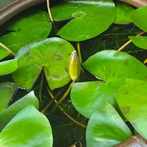 ギガンティア・ネオロゼアの浮き葉は今むっつ ななつ目の葉が明日浮くはず GSの投稿で「🐸が遊びに♡」とあるが、水鉢が沢山ある我が家には何故来ないのか 大変に悲しくなり、picを加工して自分を慰めてみたり 撮影日:8/2