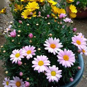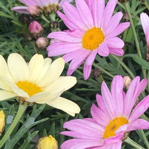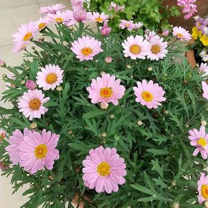 お花屋さんで見つけたこのピンクや黄色の花🌼🌸 成長力が高く開花性もよい! 一重のかわいいピンクのマーガレット マーガレットローリー