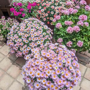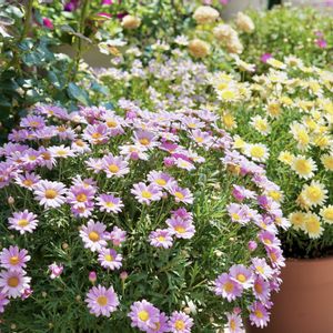 こんばんは♡ マーガレットローリー🌸 ほぼ満開デス💗 夏越ししてすごく大きくなりました😆今年初めに夜取り込むのを忘れてダメにした経験を生かして今度は慎重に🤭