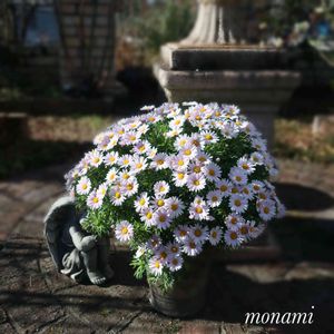 マーガレット ローリー 夏越しして大きくなったので 5日前に10号鉢に植え替えしました♪
