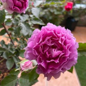 今朝のベランダより1枚 ꕤ バラ シェエラザード ꕤ 鮮やかな色でまた咲き始めました💓💓