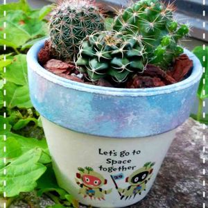 chiruyaさんの宇宙たこ鉢🐙 ダイソーサボテンを寄せ植えしました(*´∀`*)ノ✨ お子様付きのサボちゃんがいい味わい(笑) 手前の子の艶々な感じに一目惚れ💞 夏はサボテン🌵かな~(*´▽`*)