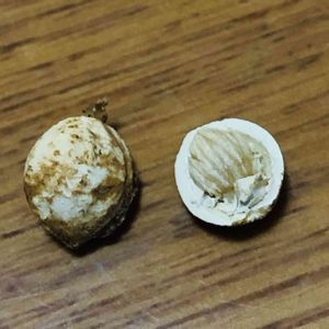 今年咲いたソメイヨシノのタネが沢山落ちてる所 このままだと思ってたら調べたら中にタネがあるとかって割って見たらビックリ🫢タネ有るじゃん 早々撒いてみたょ🌱出るかなぁ⁈