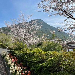 指宿市開聞十町 開聞山麓ふれあい公園🌸 今日 4/3 午後3時半頃🤳 薩摩富士⛰と染井吉野🌸 風で 花びらが少し舞ってましたが まだ🌸咲いていて この春も開聞岳と桜のコラボを見れて良かったです😃
