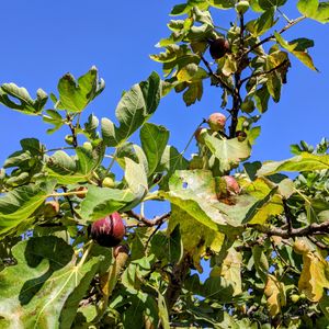 青空と秋の実り🎶 今日も無花果がたくさん採れたので赤ワイン🍷で煮てコンポートにしました(◍•ᴗ•◍)❤。 一本の木から…100個ぐらい収獲したかな、まだまだ採れそうです✌️