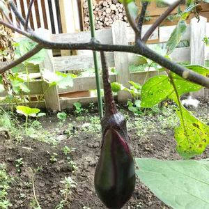 おはようございます✨ 今日は曇り☁️少し涼しく感じます✨🤗 最初の一個はナニモノかに食べられてしまった茄子…💦 なんとかこの茄子は無事に大きくなって、食べたいですね~⤴️🍆