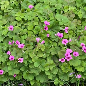 オキザリス、まだまだ元気に咲いています。近所の人が植えたんだけど、どんどん増えて、こんもりしてます。 つゆに濡れると、キラキラ綺麗✨ あちこちに、広がってます😂