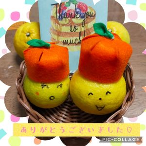 ミッドナイト投稿〜🌃 花友さんが送ってくださった、はるか🍊が、とっても美味しかったので、今日作ったみかんの帽子を被せて記念撮影…📸😊 ありがとうございました💕