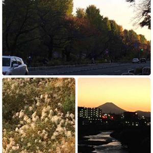 昨日は用事があり自転車で40分、国立市へ🚲 一橋大学や高校、中学、小学校など学校が沢山ある街。三浦友和、百恵夫妻のお家もあります。大学通りにはイチョウと桜並木があり、春は桜、秋はイチョウが見事です。歩道と車道の間に広い花壇もあり四季折々のお花が綺麗です。今は植え替えの時期のようでマリーゴールドや千日紅などが引っこ抜かれていました。 真っ黄色のイチョウ並木を期待していましたが、まだグリーンが多かったです。 夕方撮影のため逆光でよくわかりませんね🙏 家に帰る途中には多摩川があり、大きな橋を渡らなければなりません。多摩川土手にススキの群生があったので橋の上からパチリ🤳 足はフラフラだしススキの波の中に飲み込まれそうになり少しクラクラ😵 家にだいぶ近くなり地元の浅川が見えて来てホッ☺️雲ひとつない快晴の夕焼け空に富士山のシルエットが✨ やっぱり写真撮っちゃう🤳😆 快晴の暖かい1日でした。 お付き合い頂きありがとうございました。