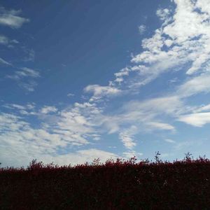 朝のワン🐾散歩道ー。 ふと、空を見上げると、風で雲が流れて いてこのまま、飛んで行きたい気分に🎶ワハハ