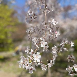 近所の桜の公園に1本だけ、シダレサクラが咲いてます😍 まだ若い木です。 どんな風になるのか楽しみ。 …写真撮ってたら、👴にお母さんて声かけられた🤣