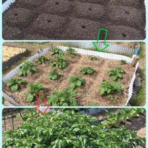 ジャガイモの土寄せをしました。こんなんでいいのかな。