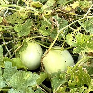 ショ〜ック!🍈ムーンライトに つる枯病発生! 昨日までは葉に症状は無かった、 根張りのための水やりが知識不足で、ここでアウトになるのかな? この蔓は完全に葉が枯れて、もう一つはまだ枯れていない、時間の問題かなと? 一時ネットは見ることができた、 復活は無理ですか? この実は? プリンスメロンは現状大丈夫そうです、 ただスペース状隣なので、、😣