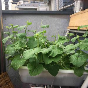 GWに植え付けたプランター野菜もしっかり根付いたようです☺️ メロンはそろそろ摘芯かな❓😆