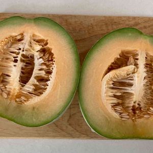 プリンスメロンちゃん❤️少々追熟させ過ぎました😅 が、甘くて美味しい❤️プリンスメロン栽培挑戦🎵大成功です🎵🎵